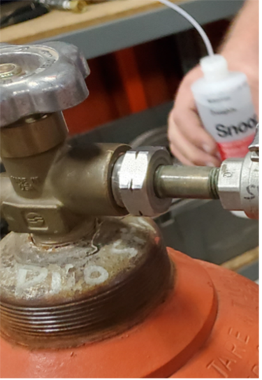 La Solución Snoop está compuesta por agua desionizada y un surfactante que produce una efervescencia sostenida al entrar en contacto con fugas de gas. También puedes preparar tu propia “solución jabonosa” mezclando agua y jabón en proporción 20:1 y vertiéndola en un frasco atomizador. Esta solución puede rociarse directamente sobre las zonas donde se sospeche la presencia de fugas, como bridas o válvulas, para identificar el origen. La solución Snoop es no tóxica, no corrosiva, no inflamable y no contiene cloro. Esta fórmula también incluye un inhibidor de corrosión para mayor protección.