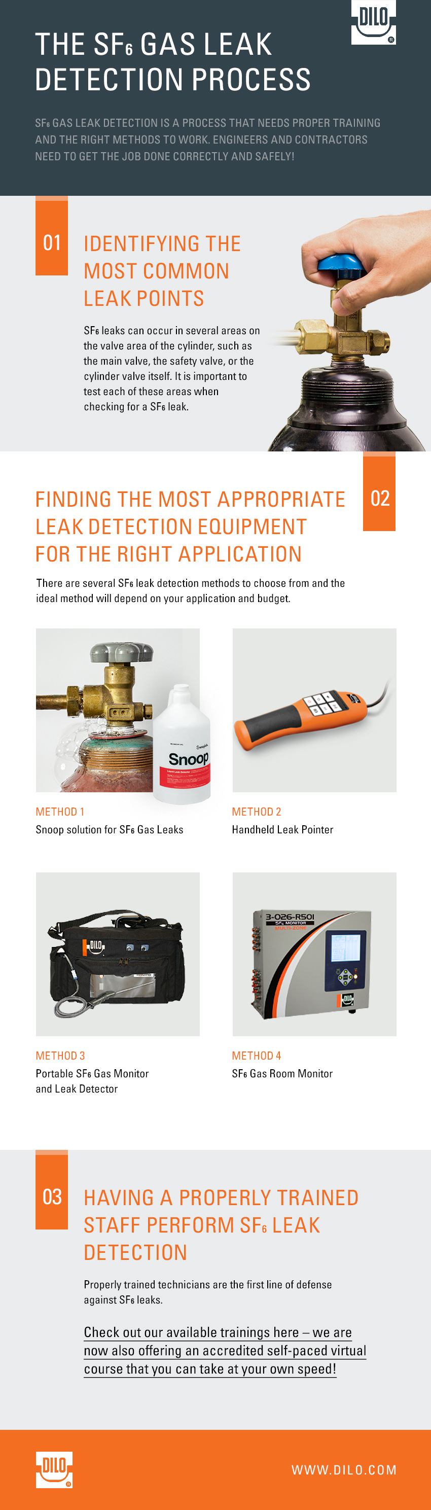 En los apartados anteriores hemos destacado los distintos equipos de detección de fugas que pueden ayudar a identificar fugas de SF₆. Si bien estas descripciones son de gran utilidad, el equipo de DILO sigue enfatizando la importancia de recibir una capacitación adecuada en estas áreas, y alienta a todas las personas que manipulan gas SF₆ a adquirir este conocimiento fundamental. Los técnicos debidamente capacitados son la primera línea de defensa contra las fugas de SF₆. Consulta las capacitaciones disponibles aquí — ¡ahora también ofrecemos un curso virtual acreditado y autodidacta que puedes realizar a tu propio ritmo!